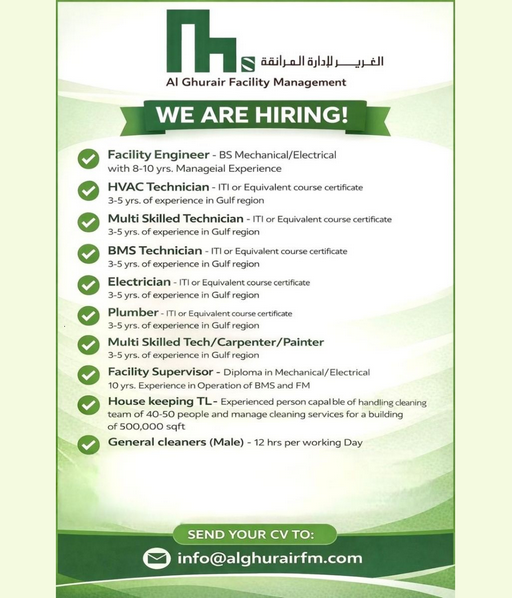 Al Ghurair Facility Management has announced several new job opportunities for experienced professionals who are looking to build a career in the facility management sector.