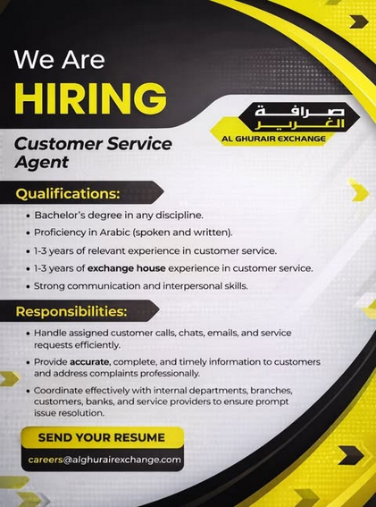 Al Ghurair Exchange promotes a professional and customer-focused work environment. Employees are expected to maintain high standards of integrity, accuracy, and service excellence.