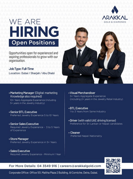 CAREERS Arakkal Gold and Diamonds: APPLY NOW FOR THE LATEST VACANCIES
