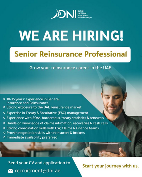 If you bring 10–15 years of reinsurance experience in General Insurance (Motor & Non-Motor), strong exposure to the UAE reinsurance market, and expertise in treaty and facultative management, we’d love to connect.