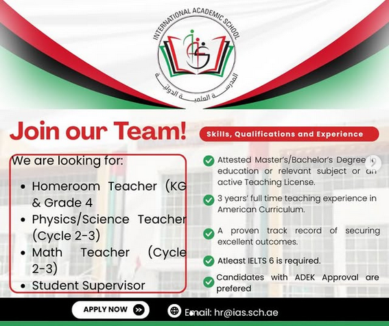International Academic School is currently seeking passionate, dedicated, and qualified educators to join our team for the upcoming academic year 2026–2027.