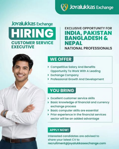 Joyalukkas Exchange offers career opportunities in the financial services sector, making it a good option for job seekers interested in banking and customer service roles.