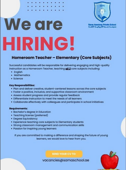SAMA American Private School offers career opportunities for education professionals and support staff.