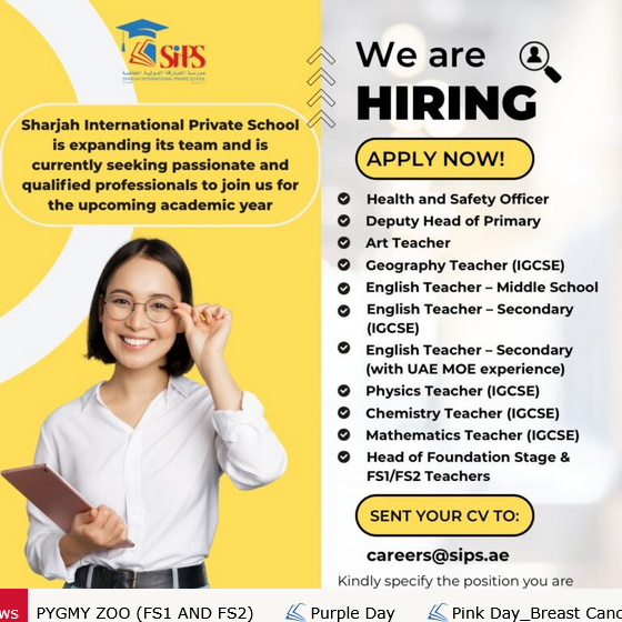 Careers Sharjah International Private School (SIPS): APPLY NOW FOR THE LATEST VACANCIES